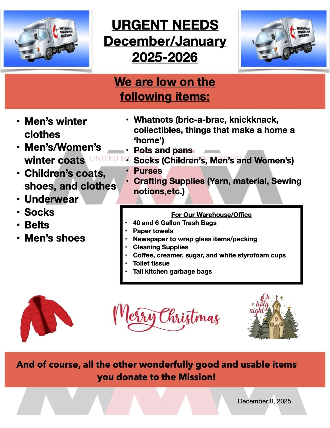 God’s Mission in the Mountains…Your Mission in His Service Newsletter Urgent Needs List 2026 Truck Schedule