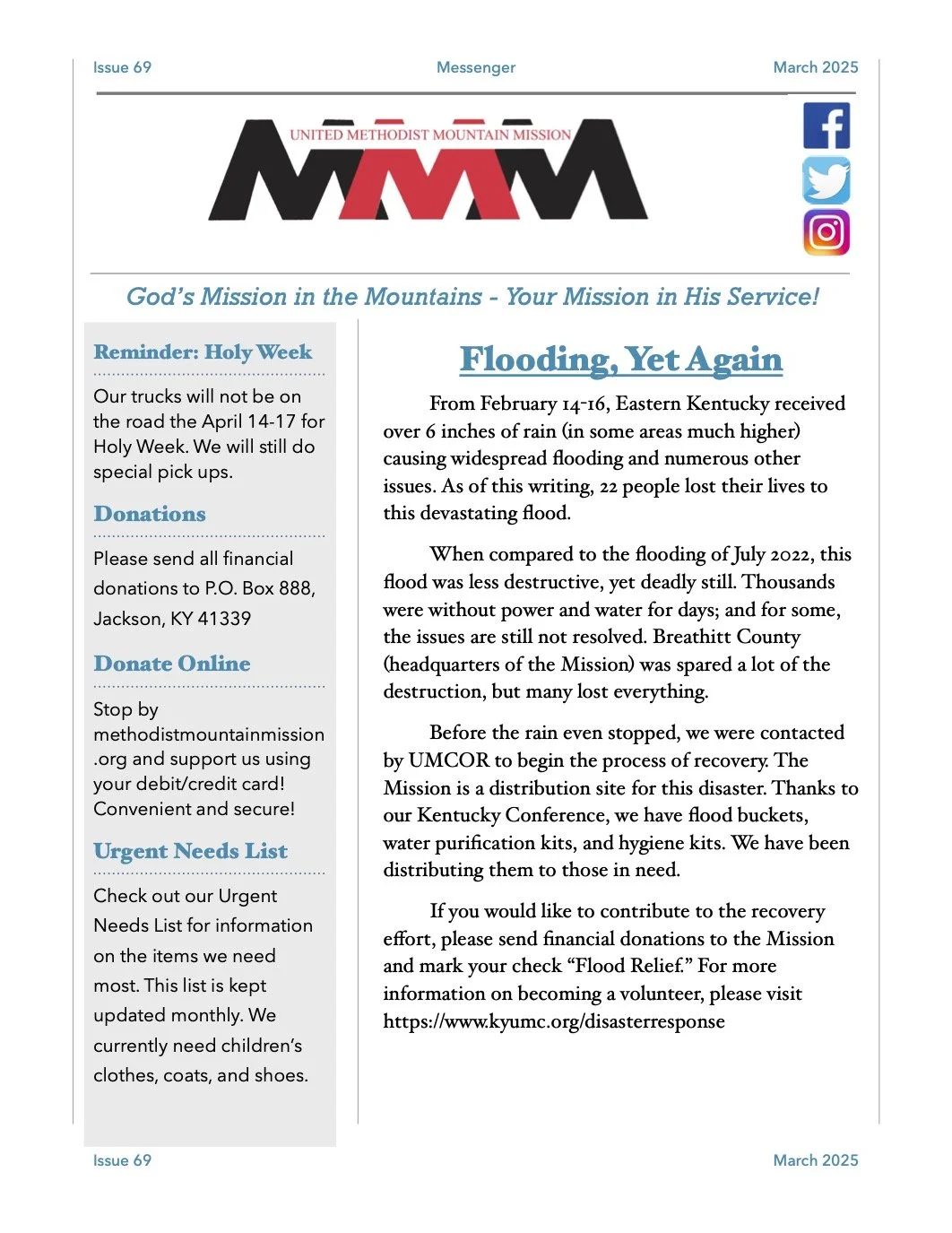 God’s Mission in the Mountains…Your Mission in His Service Newsletter Urgent Needs List 2026 Truck Schedule